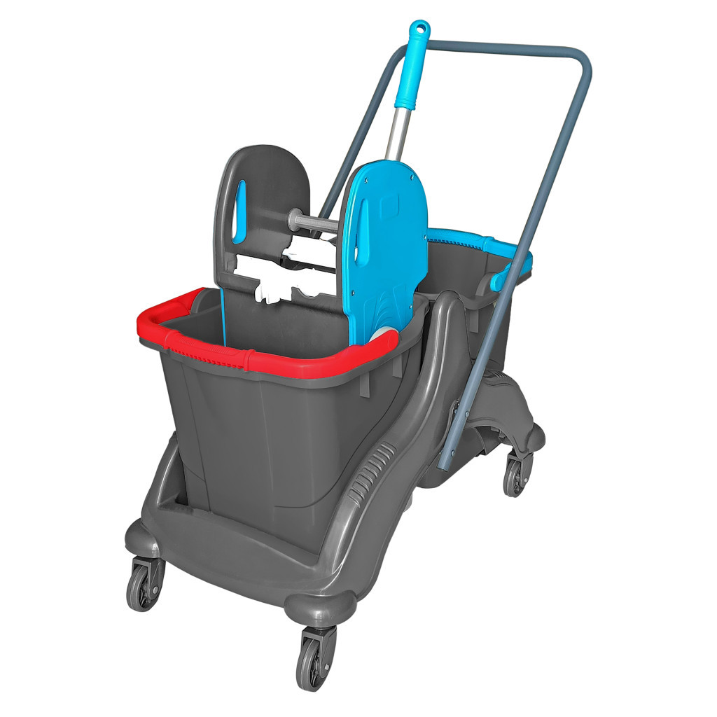 Takarítókocsi, műanyag vázas, 2x25 literes vödörrel, ECO